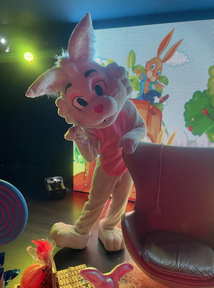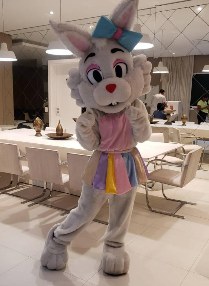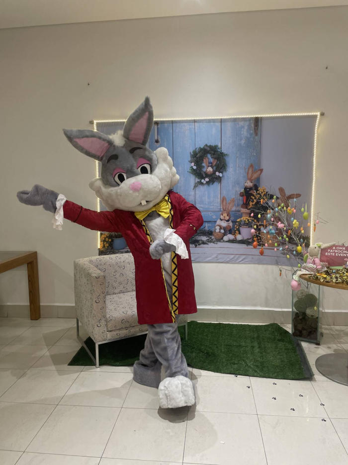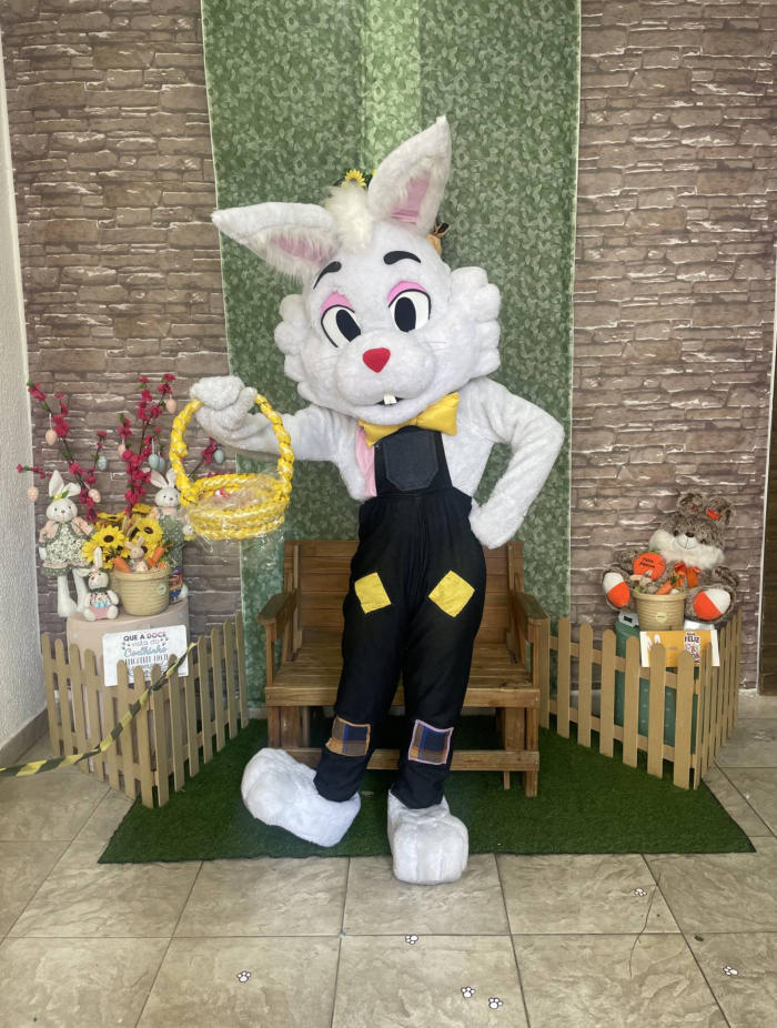 Os Coelhos da Páscoa estão preparados para interagirem com crianças e adultos na distribuição de chocolates!