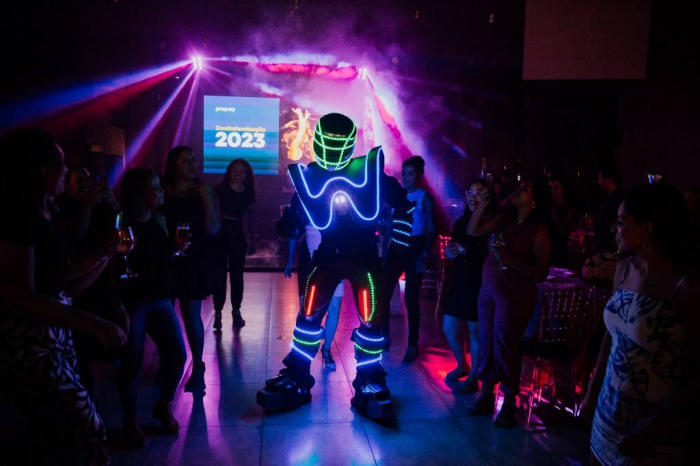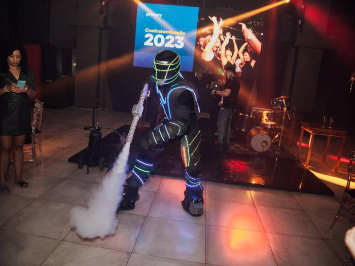 O Robô de Led anima a pista de dança da garotada com o nosso diferencial que são os jogos de luzes