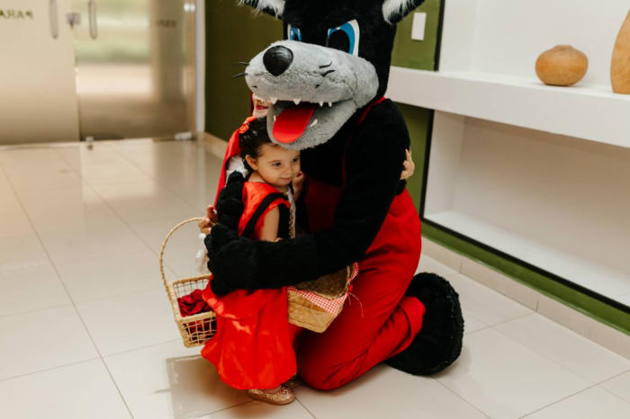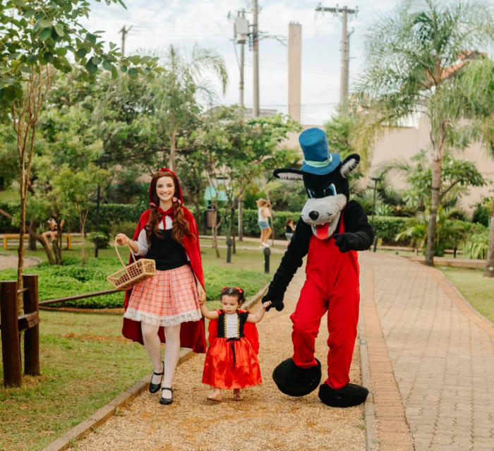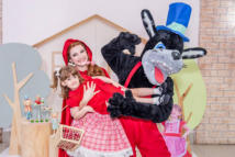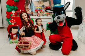 Pela estrada afora a Chapeuzinho Vermelho e o Lobo Mau vão de festa em festa visitando os convidados que