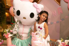 Hello Kitty, a adorável gatinha que conquistou corações ao redor do mundo, está pronta para encher sua festa de fofura e