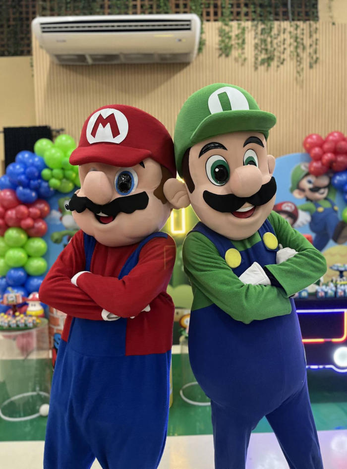 famoso do mundo, Luigi e Princesa Peach vem diretamente do Reino dos Cogumelos para a sua celebração que será cheia