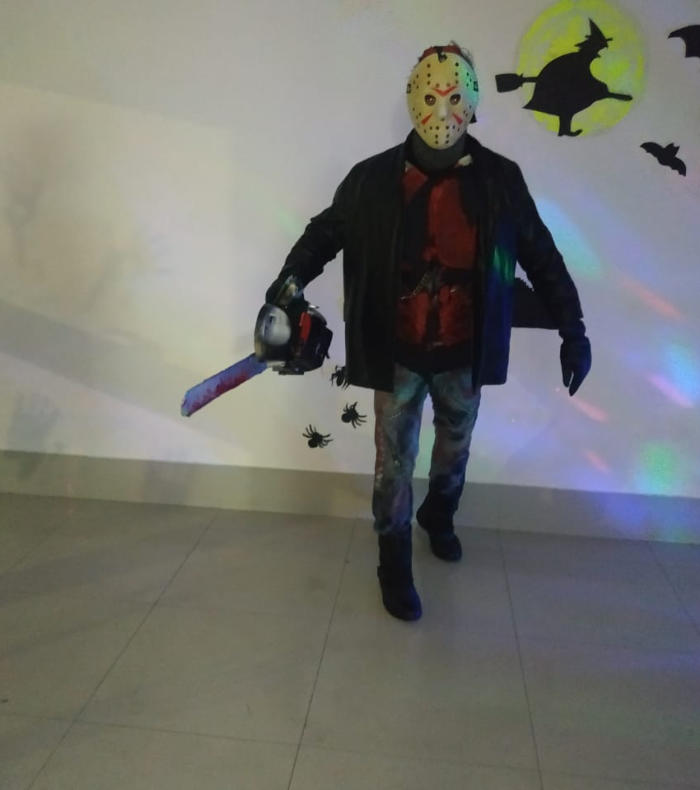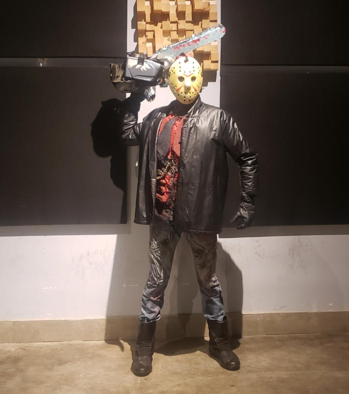 Com uma serra elétrica de arrepiar, o Jason do clássico filme "Halloween" vai deixar