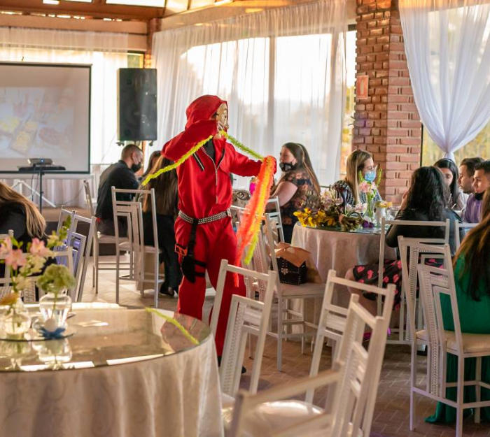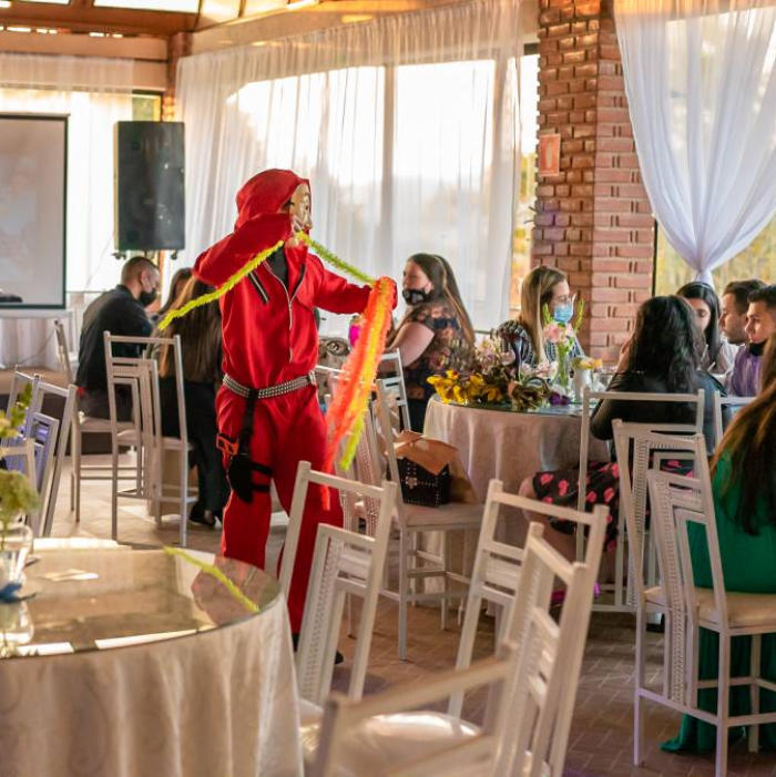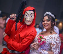animação! Em casamentos, os assaltantes também participam da passagem da gravata, divertindo