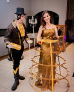 O Casal Gold é formado pelo Cavalheiro Gold que serve champanhe nas taças da Dama Gold que usa uma saia