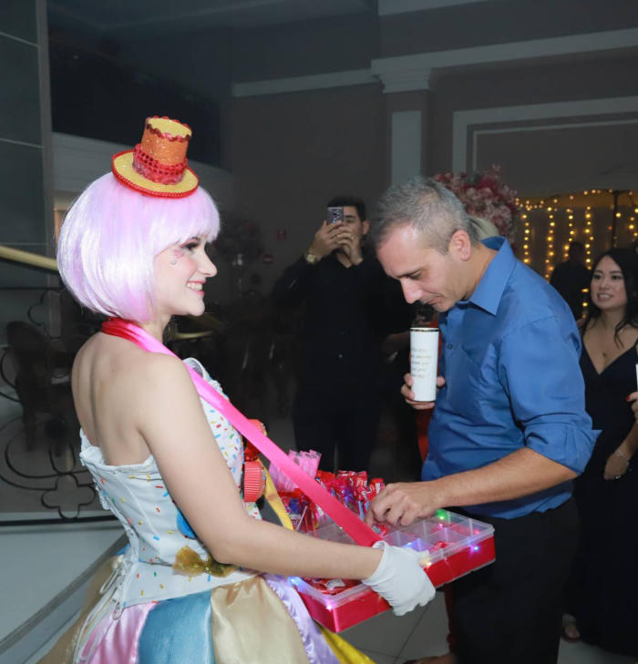 A Candy Girl serve doces e guloseimas no melhor momento da festa: a pista de